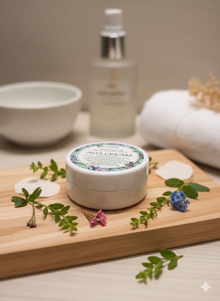 Apply Cee Beauty AHA Cream at night on clean, dry skin.